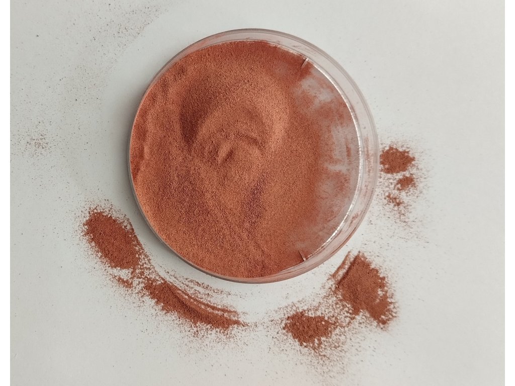 Měď prášková hrubá, sypký prášek červeno-hnědé barvy, atomizovaný vzduchem s různou velikostí a tvarem granul.